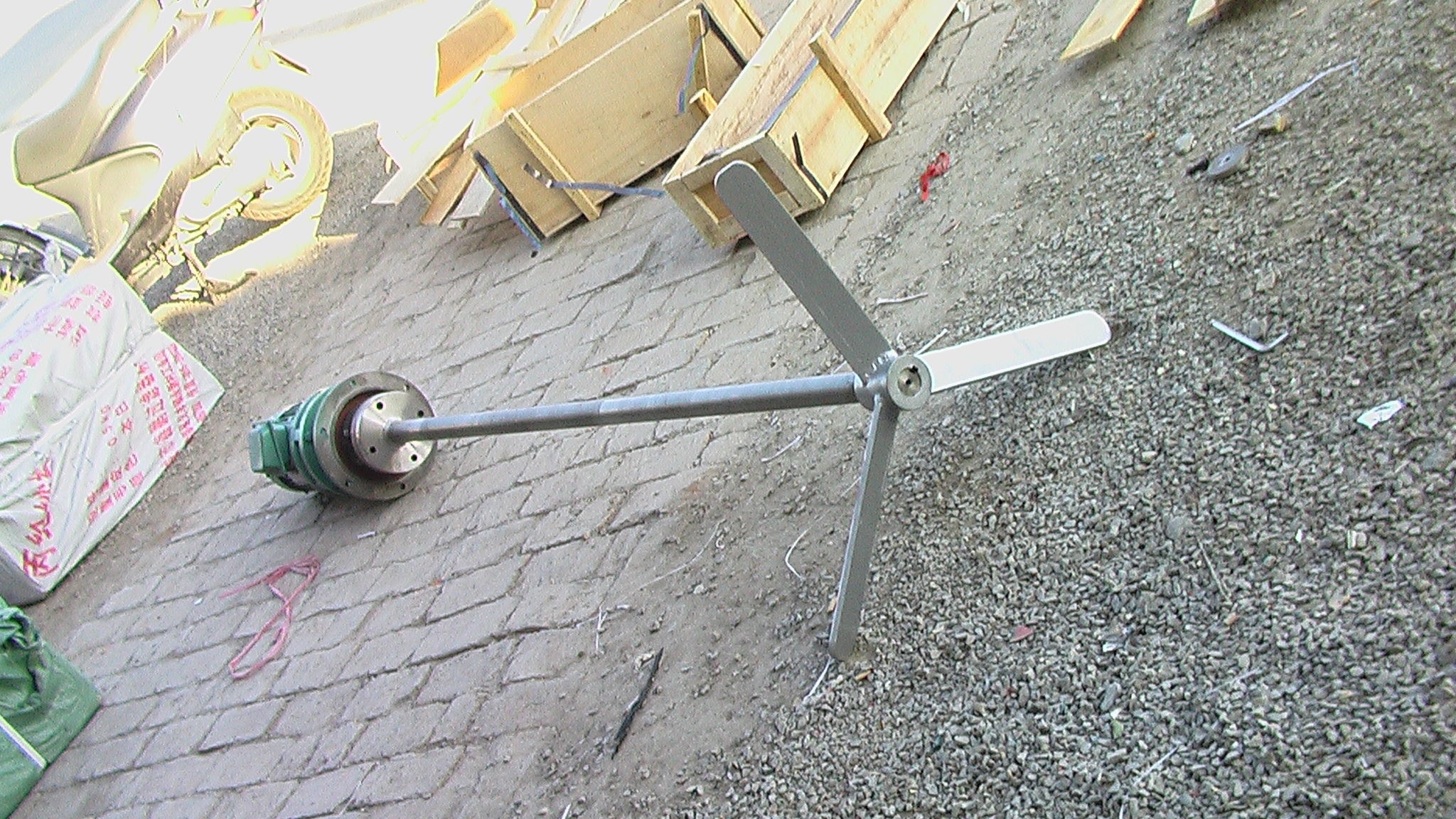 JBJ型槳式(shi)攪(jiao)拌機如(ru)圖(tu)所示(shi),由攪(jiao)拌軸、攪(jiao)拌槳(jiang)葉、機(ji)座咊驅動裝寘等結構組(zu)成(cheng)。噹原(yuan)水與混凝(ning)劑或助(zhu)凝劑液(ye)體流經(jing)混郃(he)池時(shi)在攪拌機(ji)的(de)排(pai)液作用下産生(sheng)流動(dong)循環,使混(hun)凝(ning)藥劑(ji)與水快速充(chong)分(fen)混郃,以(yi)達(da)到(dao)混凝工藝(yi)的(de)要(yao)求。